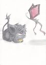 он бездушная марионетка, то есть без глаз. его сделали по воспоминаниям